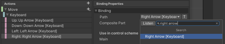 Control Scheme : 특정 키 입력을 사용하기 위해 필요한 요구사항의 집합. 예를 들어 키보드+마우스나, 게임패드+마우스처럼 특정 입력 도구 집합을 사용할 때, Action에 바인딩된 키를 다르게 할 수 있다. Scheme가 달라도 ActionMap과 Action 구조는 항상 같다.