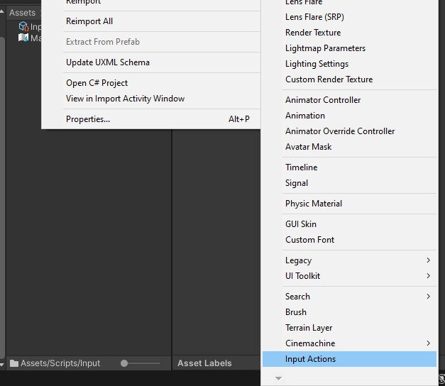 오른쪽 마우스 > Create > InputActions를 눌러 새 액션을 만들어 준다.
