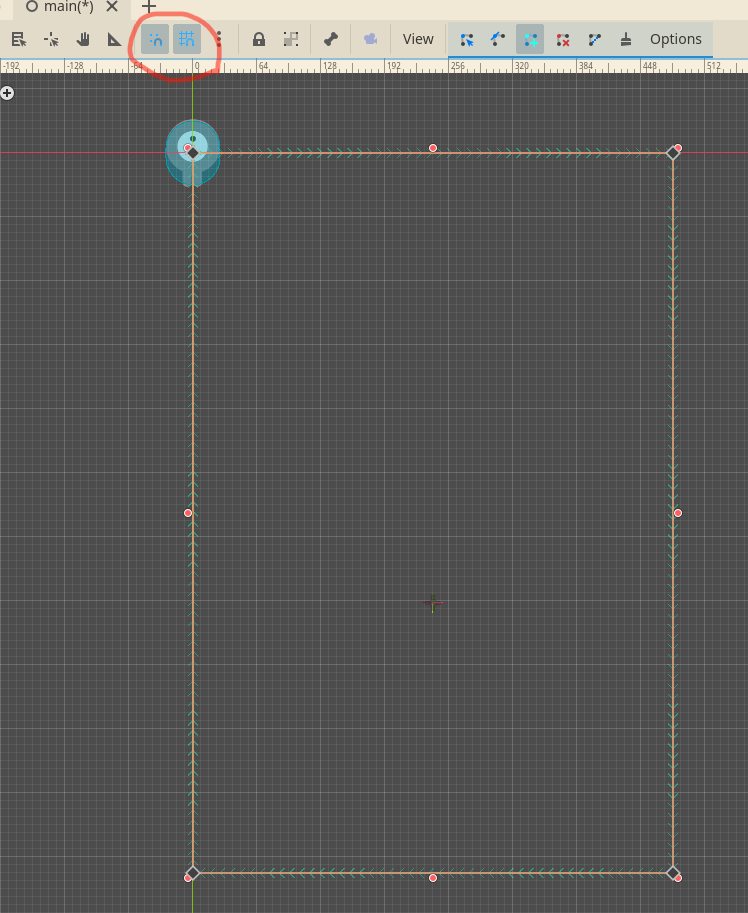 그중 가운데 버튼("Add Point")을 선택해서 화면의 경계를 Path로 그려주자. 포인트를 그리드에 스냅하려면 "Use Grid Snap", "Use Smart Snap" 기능을 적절히 사용하면 된다. (아래 사진 빨간 동그라미)