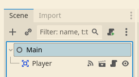 새 씬을 만든 다음, "Node"라는 이름의 노드를 추가하고 Main으로 이름을 바꾼다.