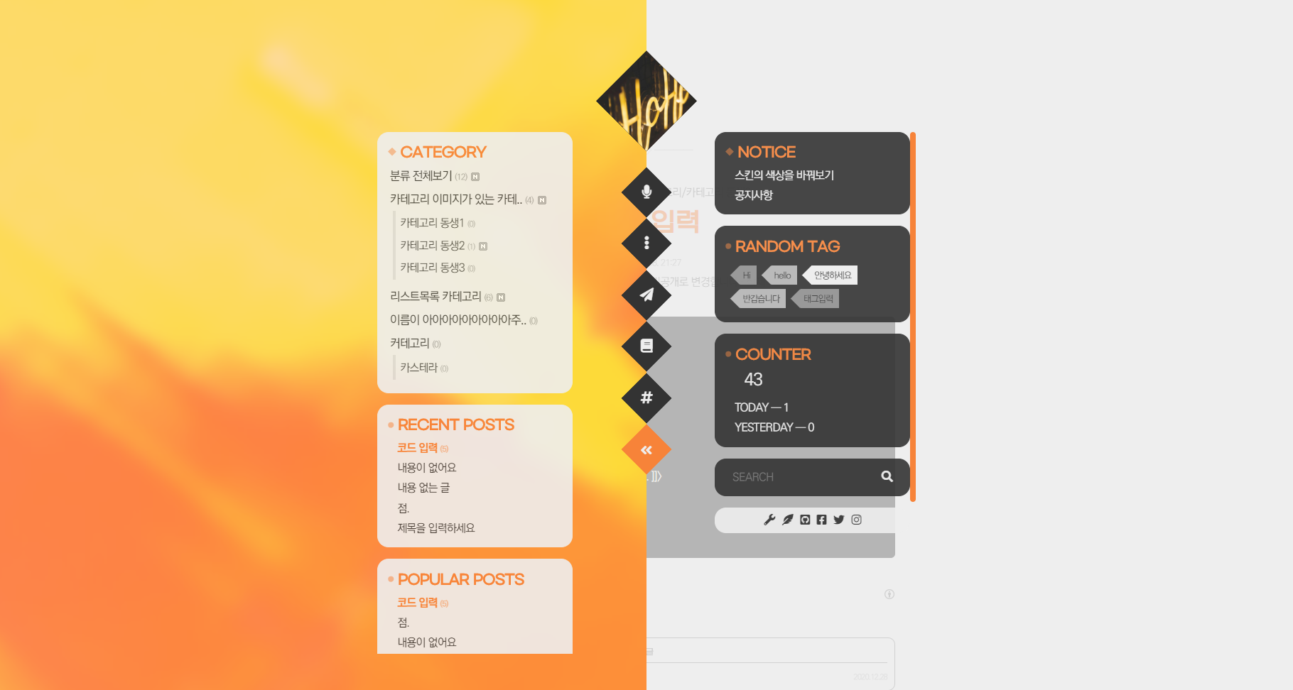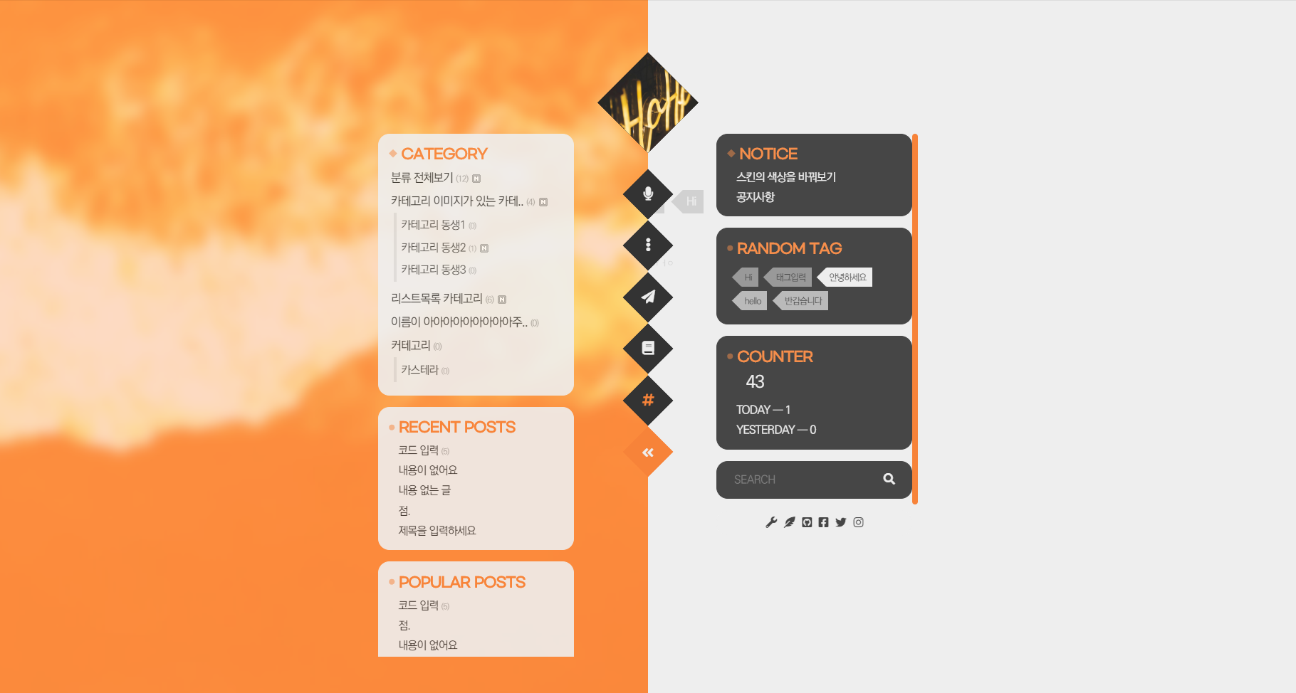 본 스킨의 사이드바는 좌우 하나씩, 총 2개가 존재합니다.