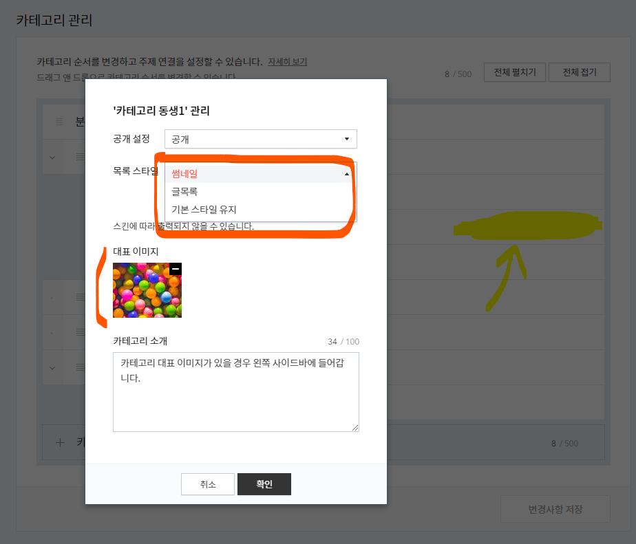 카테고리별 대표 이미지 역시 이곳에서 변경하실 수 있습니다.